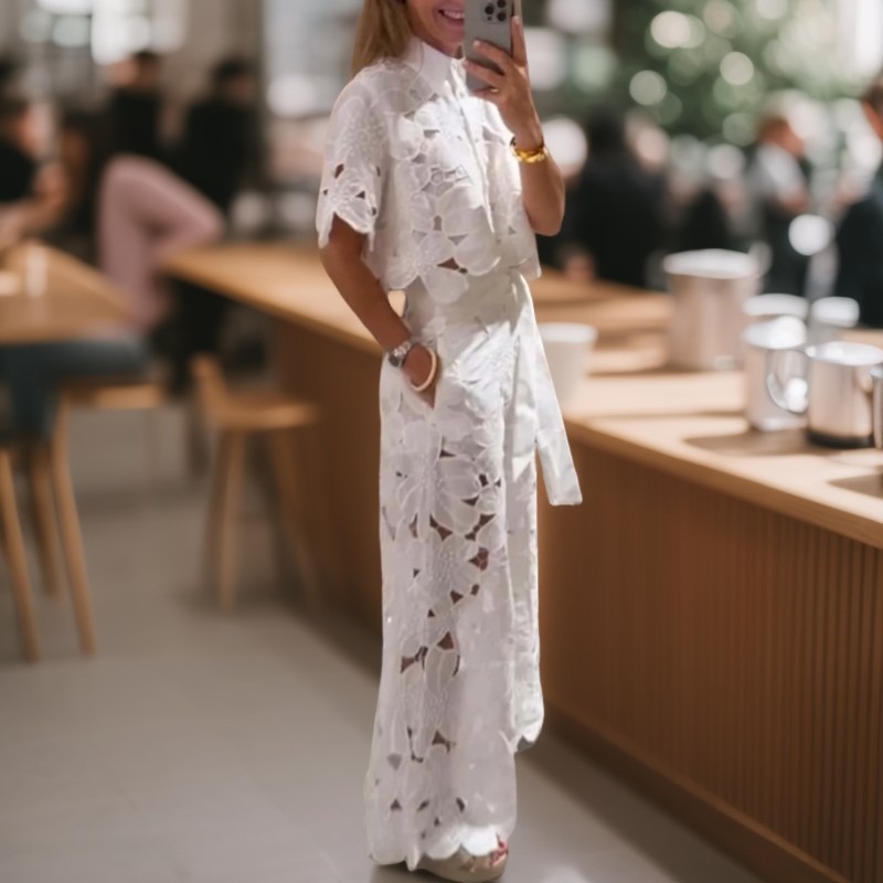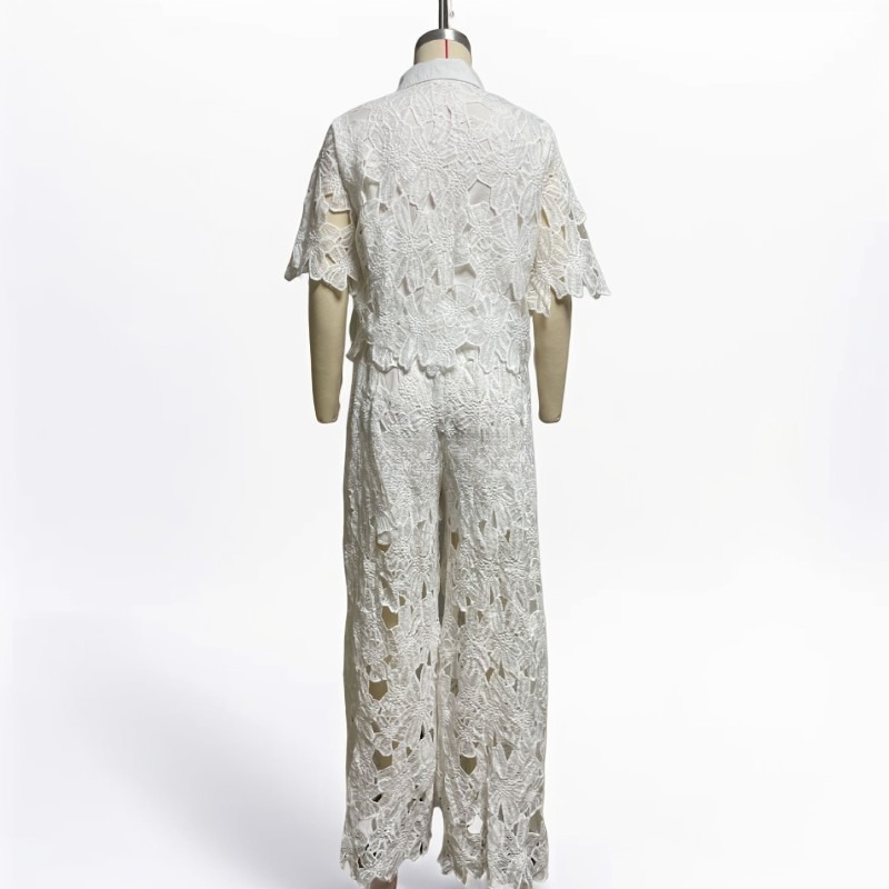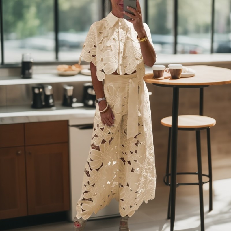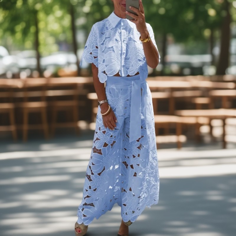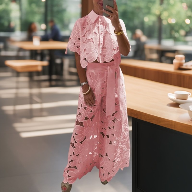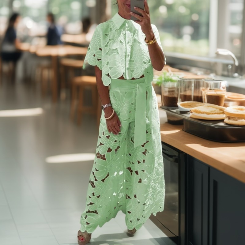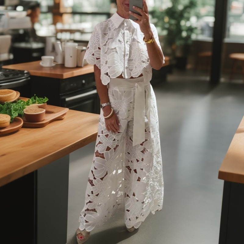 Dámský sexy dutý kardigan s topem a širokými nohavicemi, dvoudílná sada